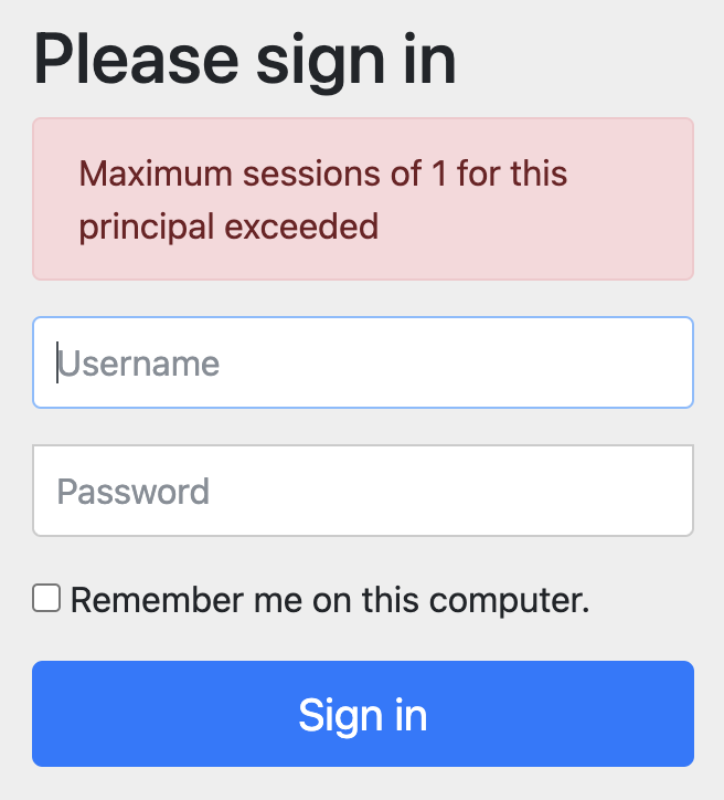 .maximumSessions(1) // 최대 허용 가능 세션 수 ( -1 : 무제한 로그인 세션 허용 )