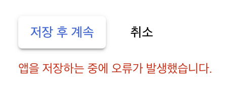 여기서 나는 계속 “앱을 저장하는 중에 오류가 발생했습니다.” 라고 에러가 뜨면서 저장이 되질 않았다.
