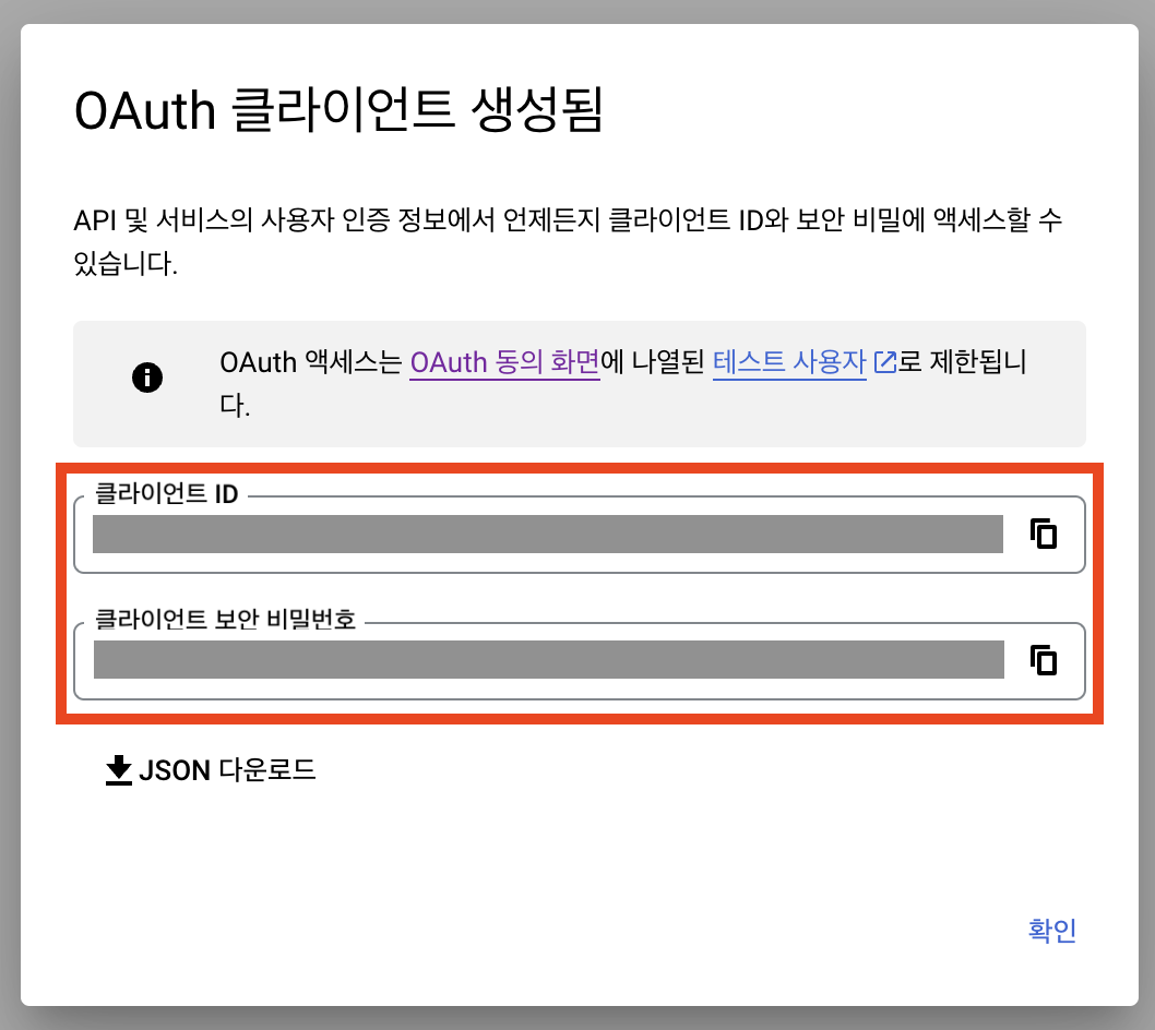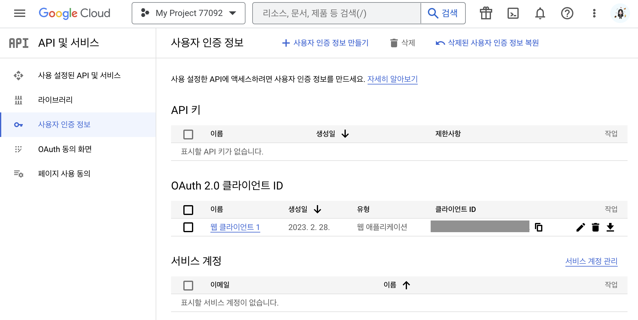 이렇게 구글 콘솔에서 할 설정은 끝났다.