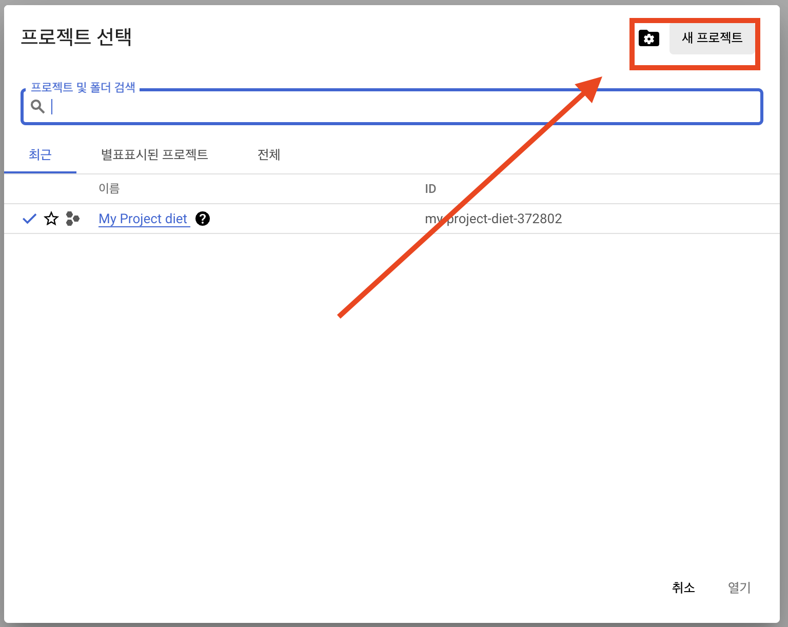 이유를 확인해보니 프로젝트 이름에 “google”이 들어가서였다. google을 지우고 저장 후 계속을 눌렀더니 성공했다!