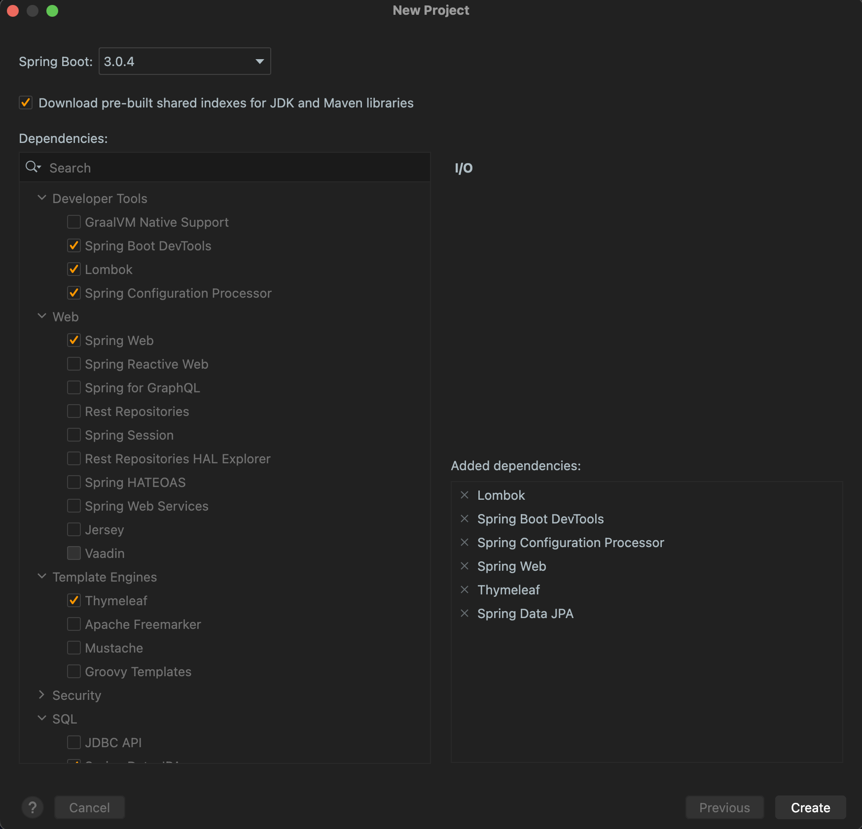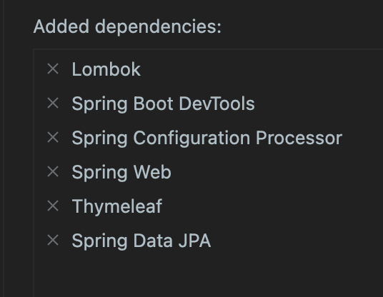 intellij에서 새 프로젝트를 만들었다. 그리고 dependencies 부분이다.